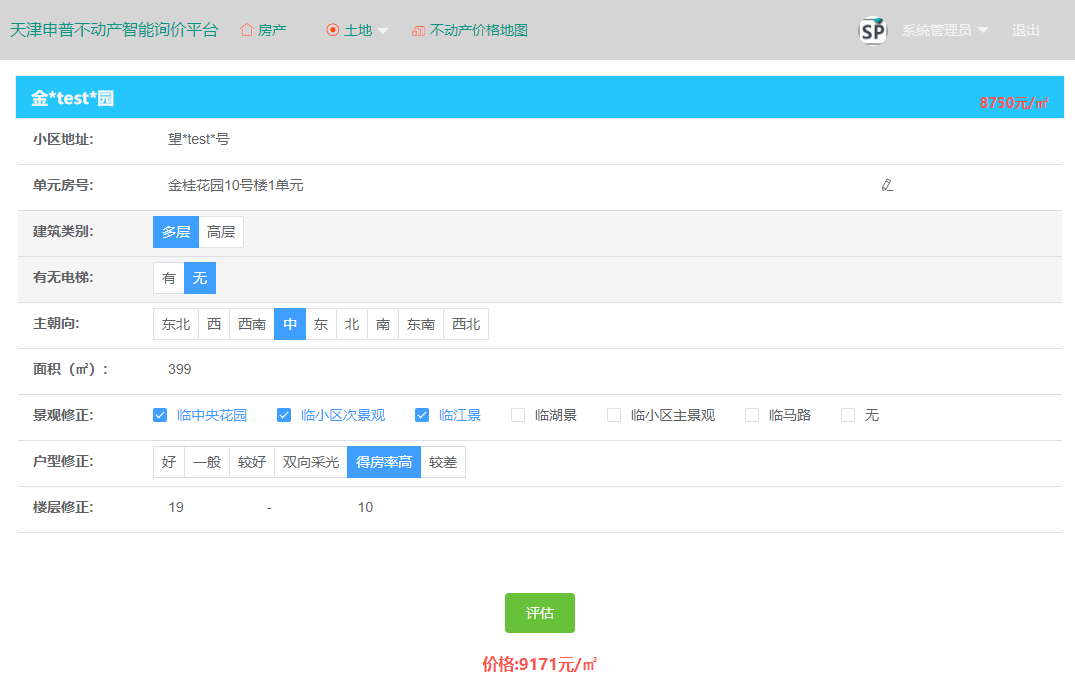 智能询价平台,利用数据库中的土地和房产数据,导入修正项及其修正系数,建立评估公式,实现土地快速评估和房产快速评估,并对数据地图聚合显示,让快速评估更加便利,让数据更加直观。
